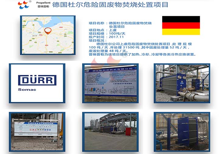 德國杜爾公司上虞危險固廢物焚燒處置項目,處理規模100噸/天,年處理量31500噸,其中固廢處理量52噸/天,廢液處理量48噸/天。